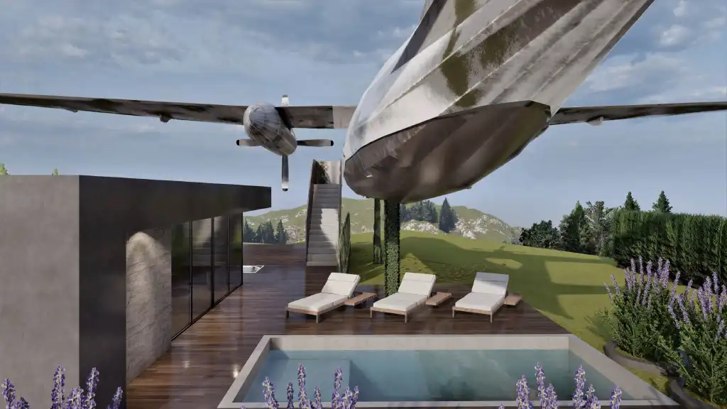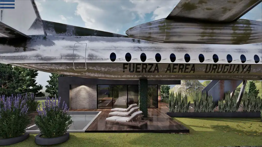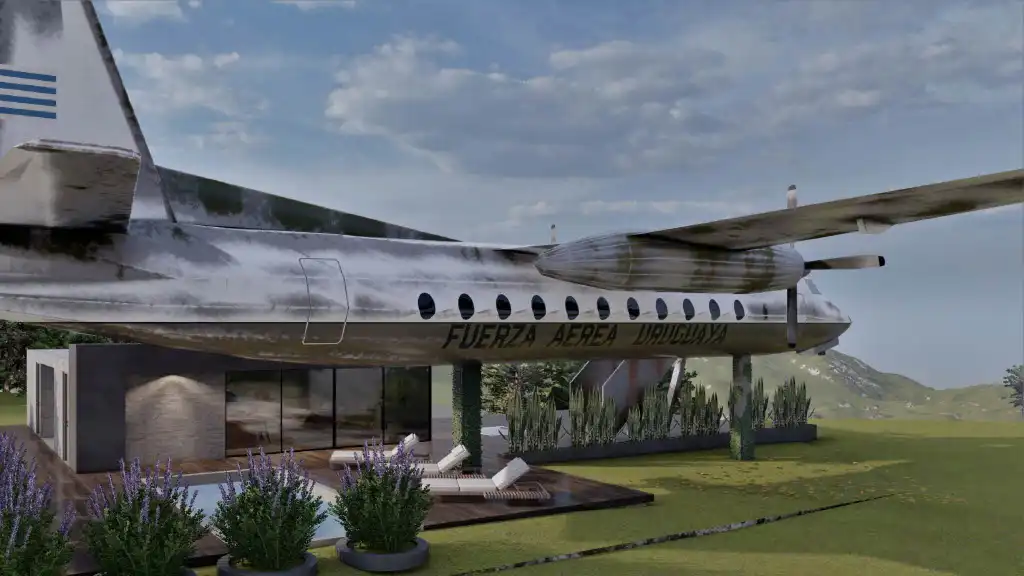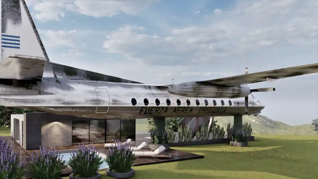 Así elegimos la chacra ideal, en las Sierras de Minas. El proyecto tiene como eje central un avión transformado en vivienda premium de más de 30 m². En su interior, los huéspedes disfrutarán de un dormitorio con baño en suite, un living confortable y una pequeña cocina con frigobar, todo diseñado con un estilo moderno y minimalista, pensado para ofrecer comodidad y calidez.